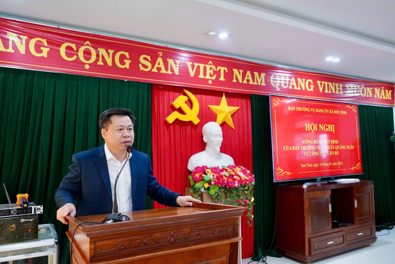 Sáng ngày 16/01/2026, Ban Thường vụ Đảng ủy xã Sơn Tịnh tổ chức Hội nghị công bố quyết định của Ban Thường vụ Tỉnh ủy Quảng Ngãi về công tác cán bộ.