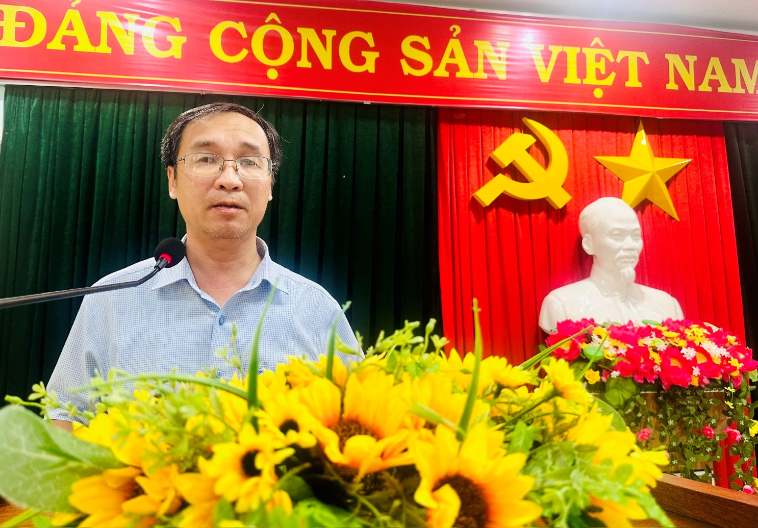 Đồng chí Huỳnh Văn Tịnh - Phó Bí thư Thường trực Đảng uỷ xã Sơn Tịnh phát biểu chỉ đạo tại cuộc họp.