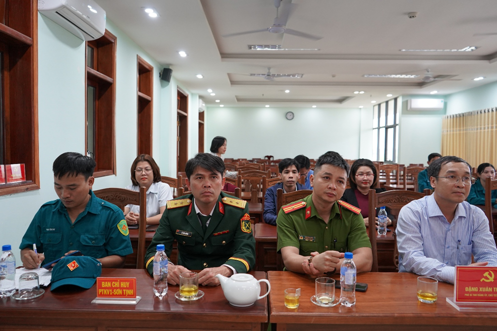 Dự Lễ Công bố tại điểm cầu xã Sơn Tịnh có đồng chí Trung tá Lê Văn Cường - Phó Chỉ huy trưởng Ban Chỉ huy Phòng thủ Khu vực 1 - Sơn Tịnh; đồng chí Nguyễn Hoàng Hiệp - Bí thư Đảng ủy, Chủ tịch HĐND xã; đồng chí Đặng Xuân Trung - Phó Bí thư Đảng ủy, Chủ tịch UBND xã; cùng các đồng chí trong Ban Thường vụ Đảng ủy, lãnh đạo UBND xã, các đồng chí Phó Chủ tịch Ủy ban MTTQ Việt Nam xã và đại diện các ban, ngành, đoàn thể của địa phương.