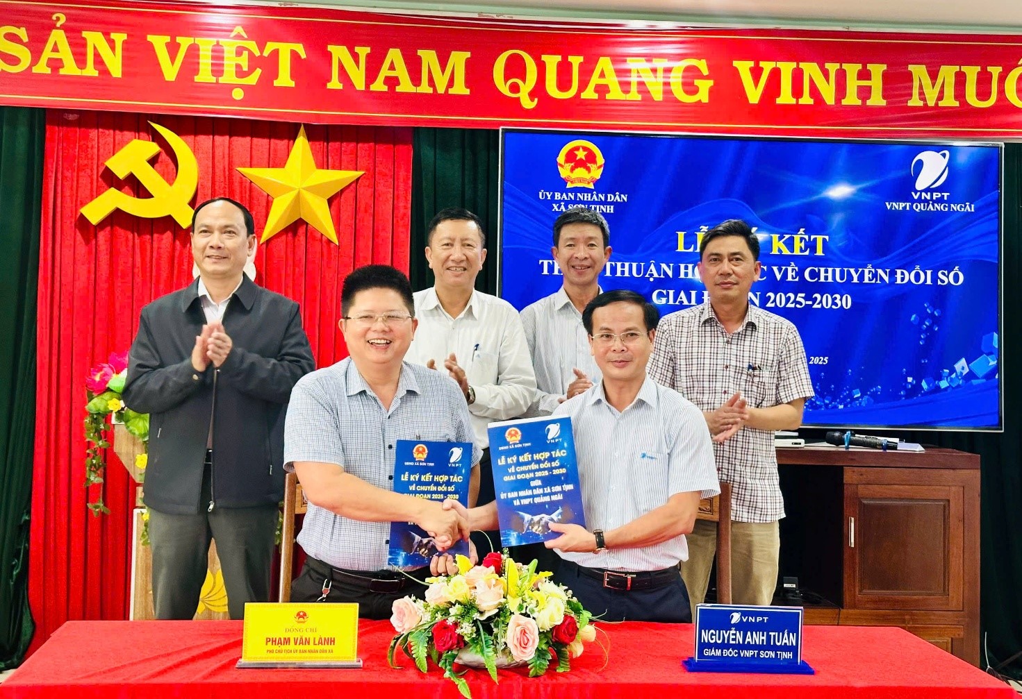 XÃ SƠN TỊNH KÝ KẾT THỎA THUẬN HỢP TÁC VỚI VNPT QUẢNG NGÃI VỀ CHUYỂN ĐỔI SỐ GIAI ĐOẠN 2025-2030