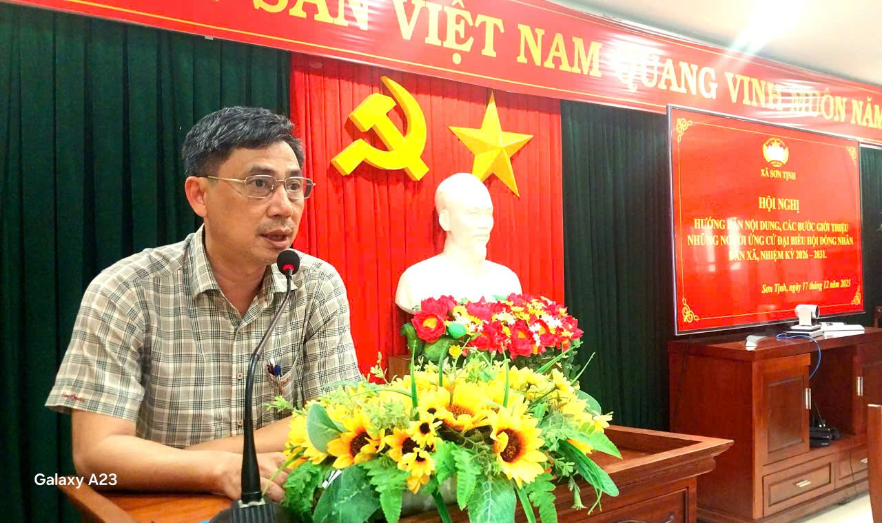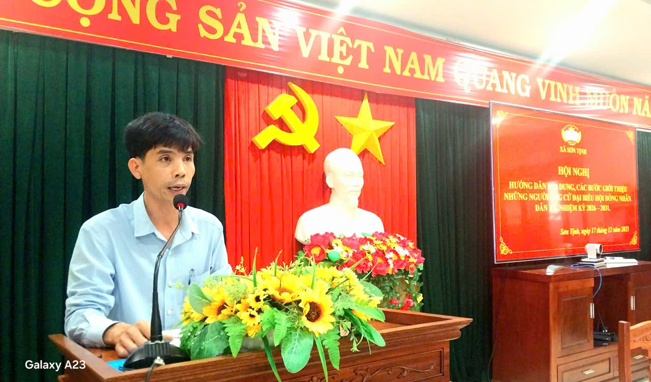 XÃ SƠN TỊNH TỔ CHỨC HỘI NGHỊ HƯỚNG DẪN NỘI DUNG, CÁC BƯỚC GIỚI THIỆU NHỮNG NGƯỜI ỨNG CỬ ĐẠI BIỂU HĐND XÃ SƠN TỊNH, NHIỆM KỲ 2026-2031