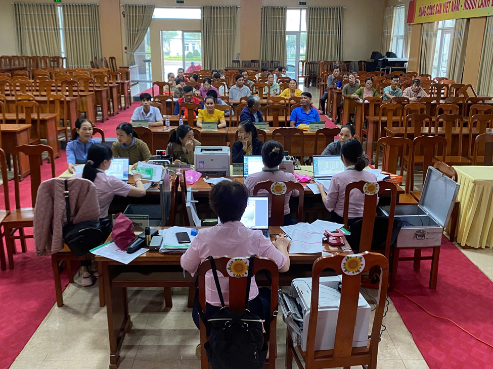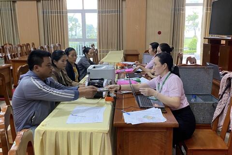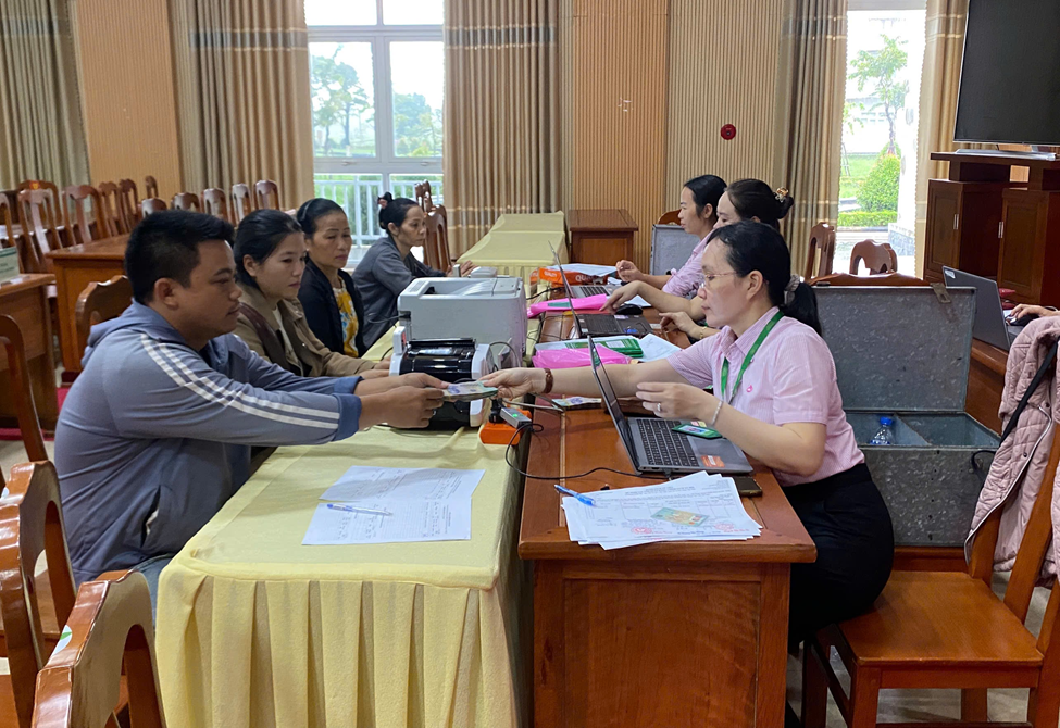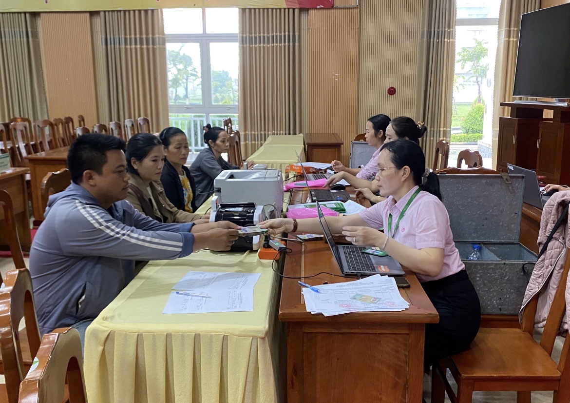 Quang cảnh phiên giao dịch của Ngân hàng Chính sách xã hội với người dân tại Điểm giao dịch xã Sơn Tịnh