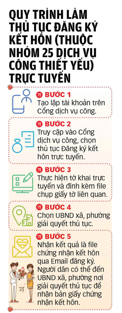 Hướng dẫn quy trình làm thủ tục đăng ký kết hôn thuộc (25 Dịch vụ công thiết yếu trực tuyến toàn trình)