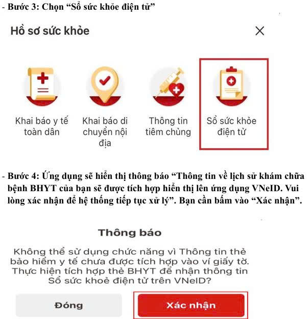 Bước 4: Ứng dụng sẽ hiển thị thông báo “Thông tin về lịch sử khám chữa bệnh BHYT của bạn sẽ được tích hợp hiển thị lên ứng dụng VNeID. Vui lòng xác nhận để hệ thống tiếp tục xử lý”. Bạn cần bấm vào “Xác nhận”.