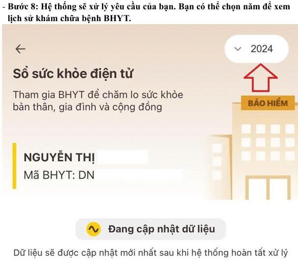 Bước 8: Hệ thống sẽ xử lý yêu cầu của bạn. Bạn có thể chọn năm để xem lịch sử khám chữa bệnh BHYT.