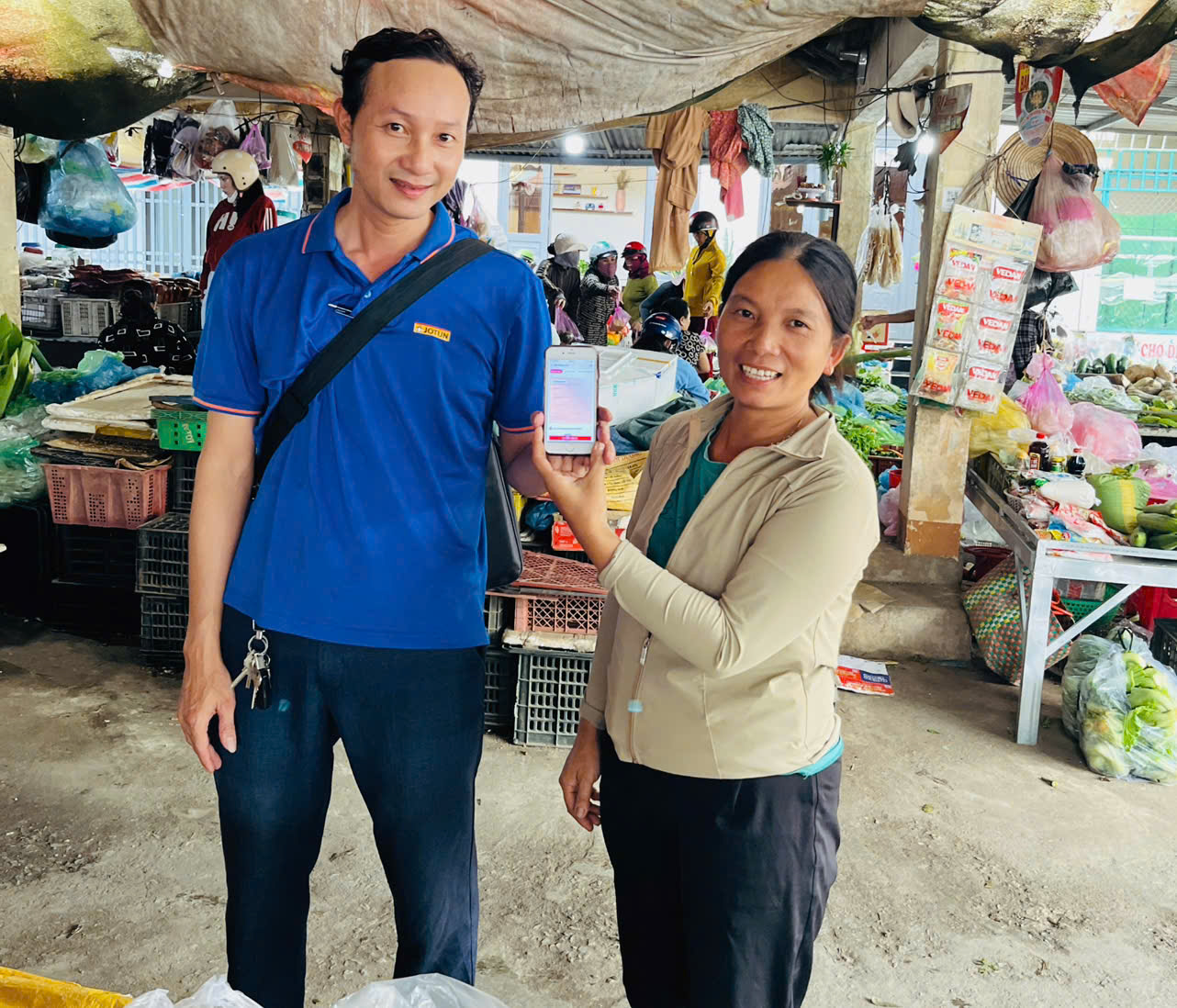 Tại đây các tiểu thương, hộ kinh doanh đã được tuyên truyền lợi ích của thanh toán không dùng tiền mặt; hỗ trợ tạo mã QR code, in ấn, đặt vị trí phù hợp tại quầy hàng và cài đặt, hướng dẫn sử dụng các nền tảng thanh toán số như: Smartbanking, ví điện tử, VNPT money, ….Với mô hình “ Chợ số - Nông thôn số”, toàn bộ tiểu thương và người dân có thể mua bán hàng hóa tại chợ bằng cách quét mã QR, hay chuyển tiền qua số điện thoại trên ứng dụng nhà mạng vô cùng nhanh chóng, thuận tiện.