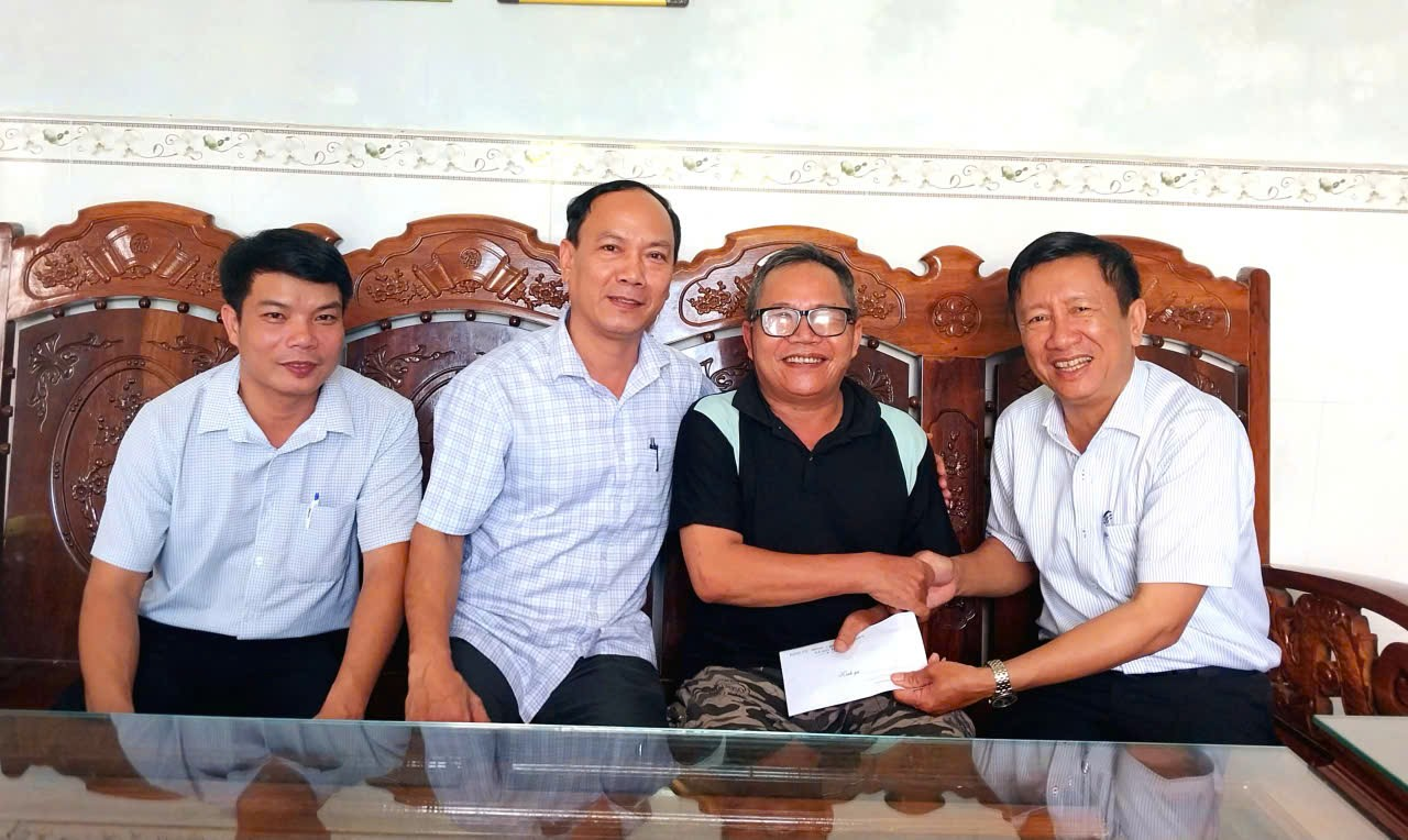 Đồng chí Huỳnh Văn Tịnh – Phó Bí thư Thường trực Đảng ủy xã cùng lãnh đạo xã thăm và tặng quà cho Thương binh Nguyễn Hồng Cúc