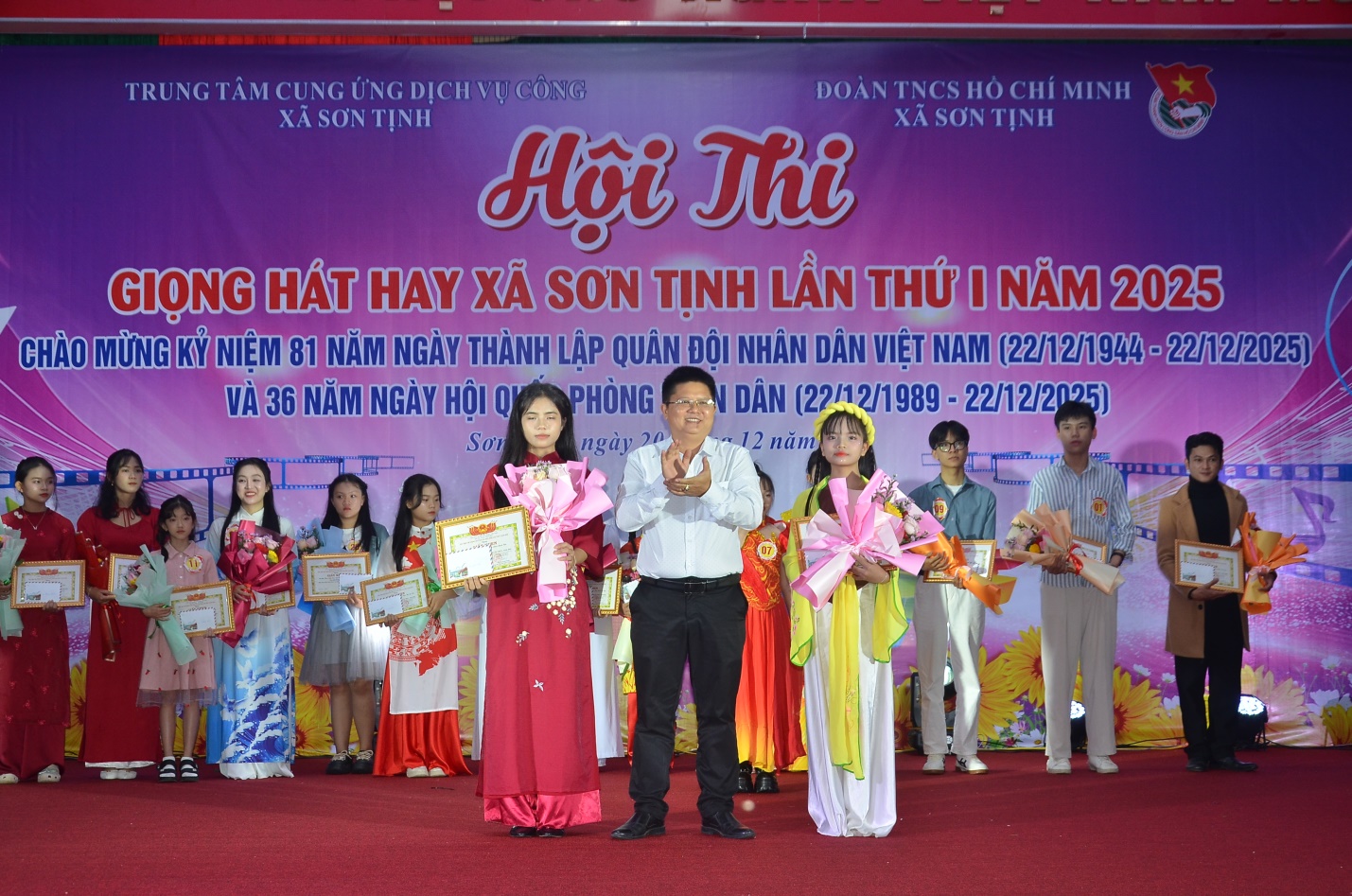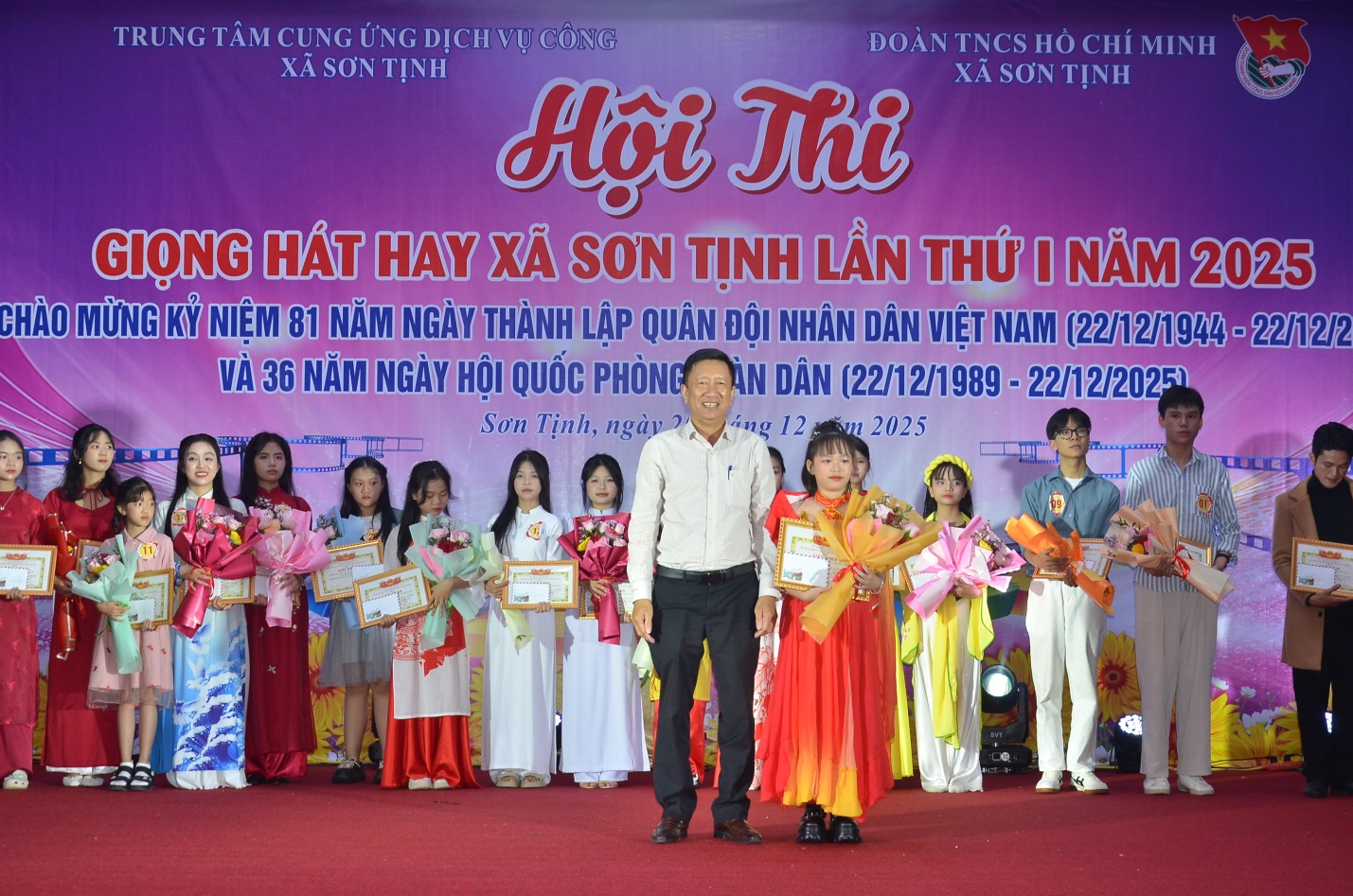 Tối 20/12/2025, xã Sơn Tịnh tổ chức Hội thi giọng hát hay lần thứ I năm 2025. Về dự có đồng chí Huỳnh Văn Tịnh – Phó Bí thư thường trực Đảng ủy xã; đồng chí Phạm Văn Lành – Phó Chủ tịch UBND xã cùng các đồng chí trong BTC Hội thi và toàn thể quý vị khán giả.