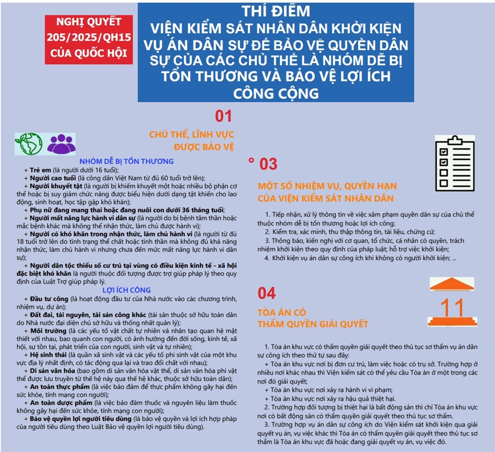 [INFOGRAPHIC] VKSND Khu vực 3 - Quảng Ngãi tuyên truyền Nghị quyết thí điểm viện kiểm sát nhân dân khởi kiện vụ án dân sự để bảo vệ quyền dân sự của các chủ thể là nhóm dễ bị tổn thương và bảo vệ lợi ích công cộng