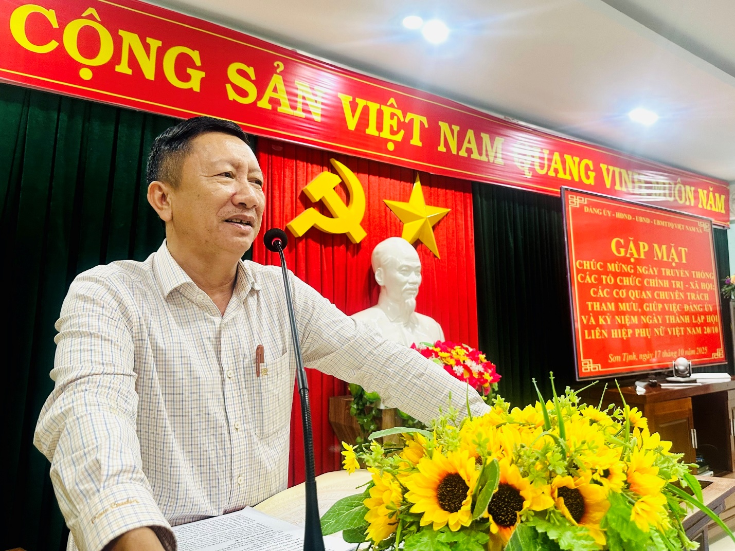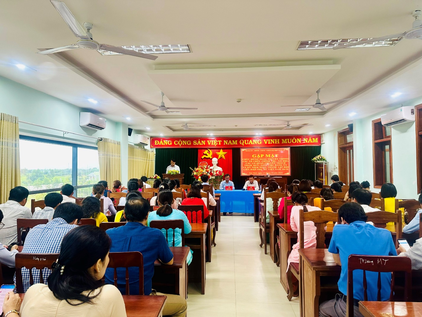 Chiều ngày 17/10/2025, Đảng ủy, HĐND, UBND, Ủy ban Mặt trận Tổ quốc Việt Nam xã Sơn Tịnh long trọng tổ chức buổi gặp mặt kỷ niệm Ngày truyền thống các tổ chức chính trị - xã hội, các cơ quan chuyên trách tham mưu, giúp việc Đảng ủy và chúc mừng 95 năm Ngày thành lập Hội Liên hiệp Phụ nữ Việt Nam (20/10/1930 - 20/10/2025).
